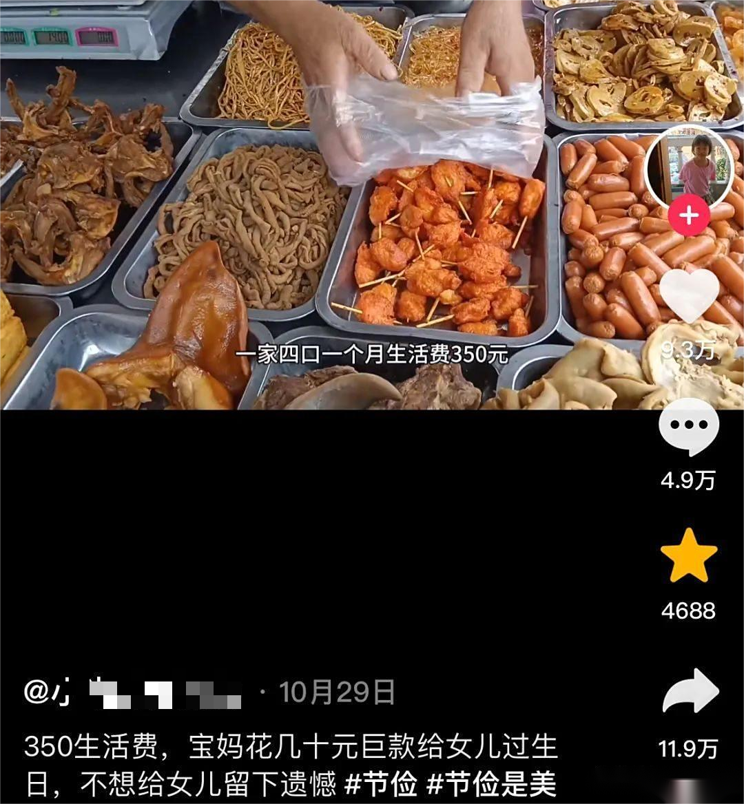 一家四口月生活费仅350元,她咬牙花了42元买了牙签肉、虎皮鸡爪和凉拌菜,还做了西红柿鸡蛋汤。