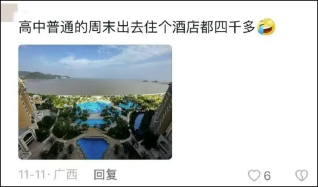 说自己高中时候去住个酒店就要四千多。