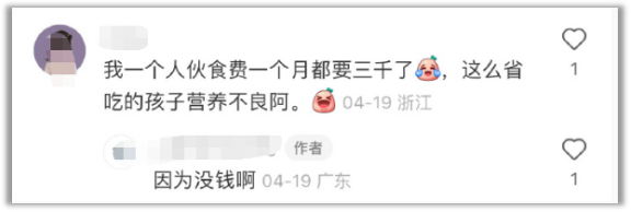 身负20万的债务、工作收入不高、没有自己的房子得租房住、再加上还有个孩子要养。所以她手头不宽裕,和儿子一起每个月只有600块用来吃饭。