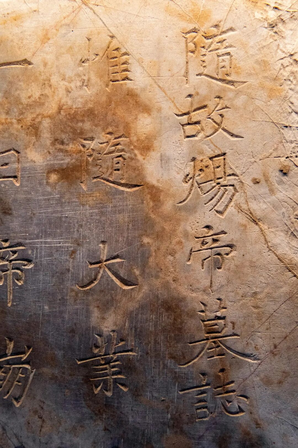 隋炀帝死后,被草草收葬。图为其墓志铭碑刻。摄影/洛卡奇