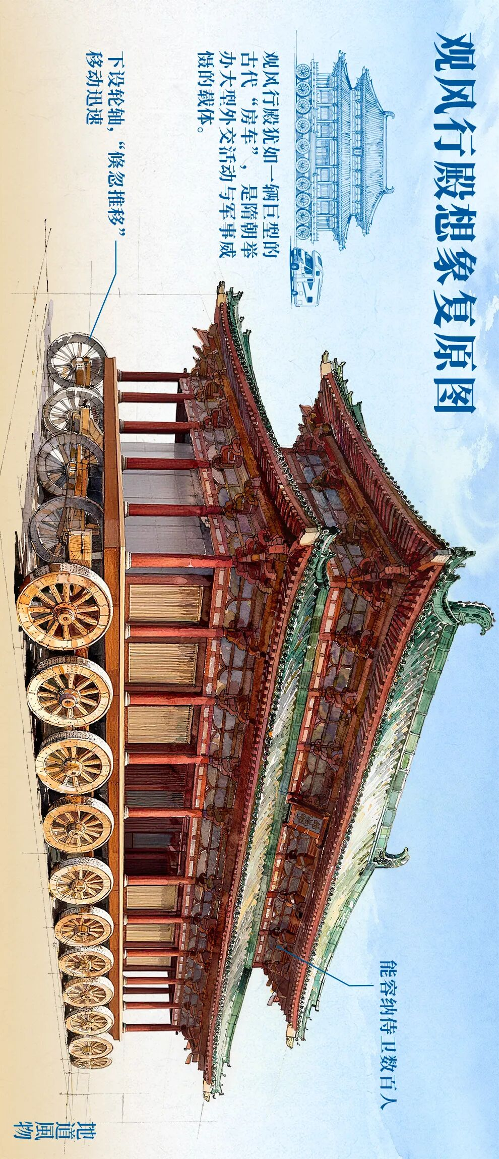 隋炀帝西巡张掖,携带了“观风行殿”,上陈文物,用以彰显国力与军威。制图/张琪