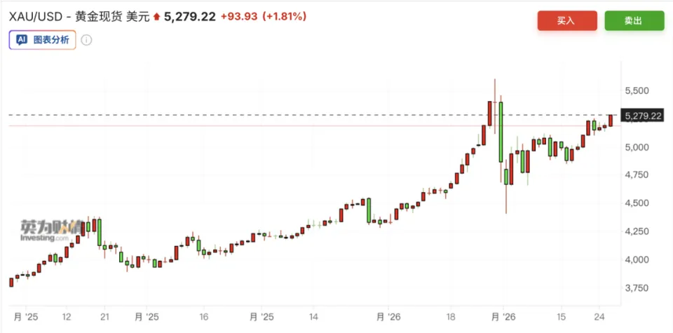 在本周五,国际黄金现货价格已经逼近5300美元/盎司,1月末时一度逼近了5600美元,而后在获利了结冲击下跌至4400美元区间。近期涨势加速。