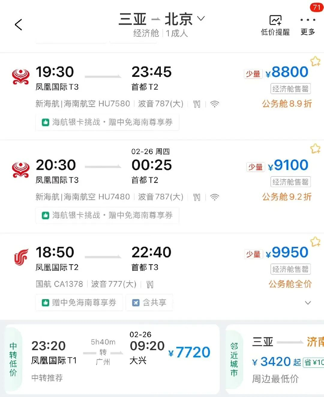 无数人蹲在三亚凤凰机场,一遍又一遍刷新APP,看到的结果都一样:经济舱,一张不剩。能买的,只有价格直奔一万块的公务舱。