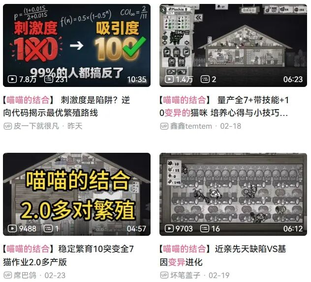《喵喵的结合》里的猫咪繁育和现实中很像。这是因为E胖在开发期间,真的去研读了不少动物优生学相关资料,并试着以游戏中的方式还原。