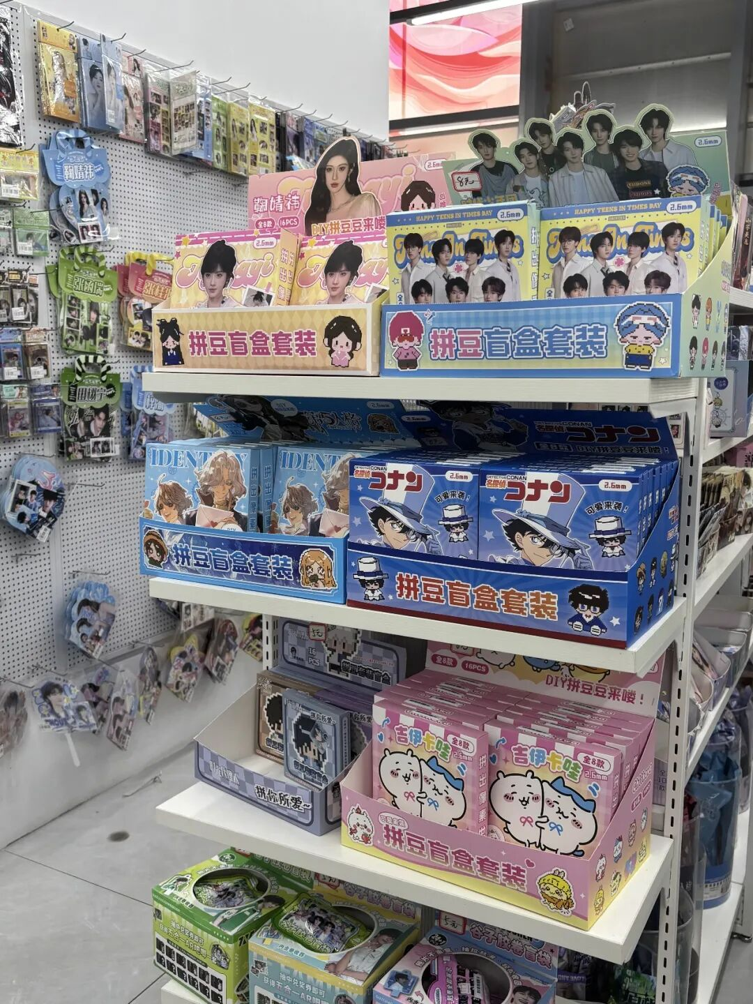 去年开始,阿J发现县城商圈内的连锁潮玩门店开始有了谷子货架。“想在县城追求正版,一般就是主要商圈的绿光派对、三福、伶俐这些连锁门店。”