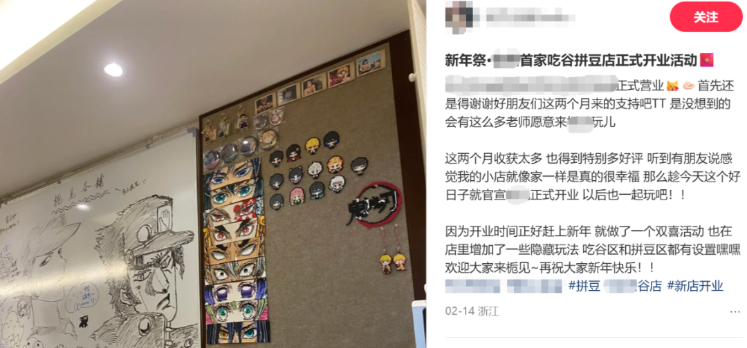 如果个人商家判断门店的主要客群对正盗问题并不敏感,自然也会倾向薄利多销的“野周”。而判断客群仍然对选品有所要求的门店,便可能转向其他能补充收入的业务,如适合打卡拍照的“推活”咖啡餐饮、拼豆谷美等手作体验、二手谷子的格子铺租赁等,提供线上交易无法补充的社交和情绪价值。