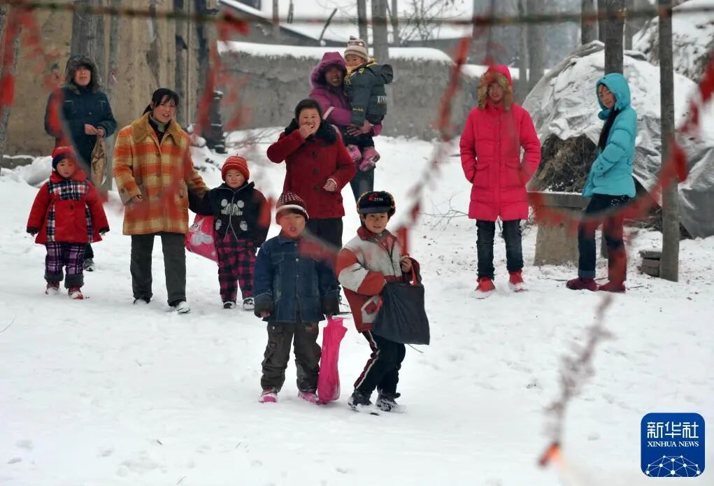2010年2月14日,在河南新蔡县佛阁寺镇大展庄,村民在等待鞭炮燃放后到邻居家拜年。资料图:新华社