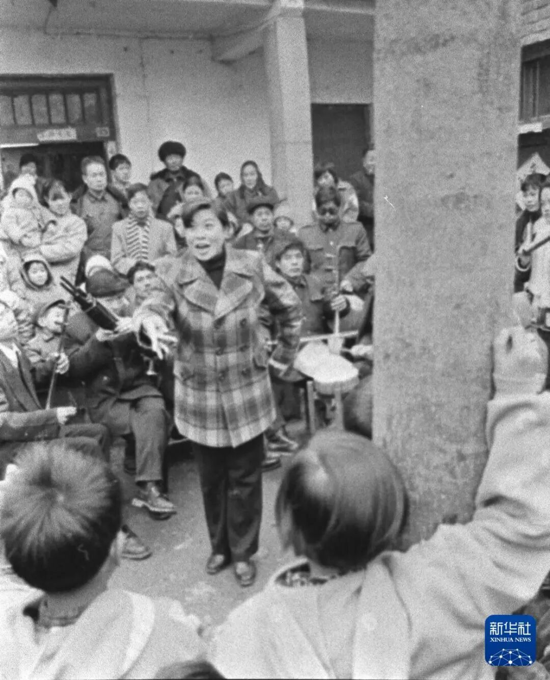 1997年2月3日,在河南郏县西安良村的一户农家小院内,村农民剧团正为村民进行春节期间的首场演出,通过演出拜年。图源:新华社