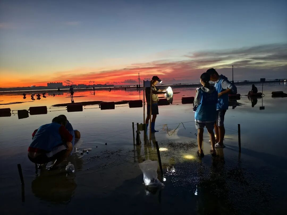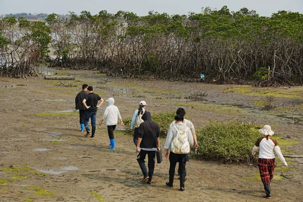 我们和海大的老师同学、北港村民前往滩涂寻找海草踪迹