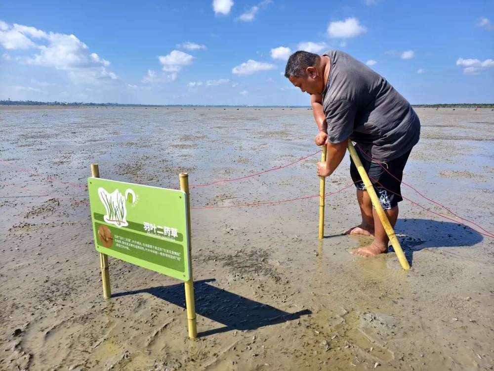 北港村民安装海草科普牌及围栏