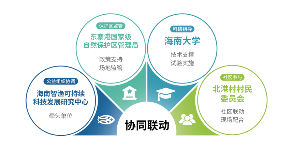 面对海草床的消退,单靠一方的力量显然不够。为此,由智渔牵头,联合了东寨港国家级自然保护区管理局、海南大学以及北港村村民委员会,共同组成了一个四方协作团队。
