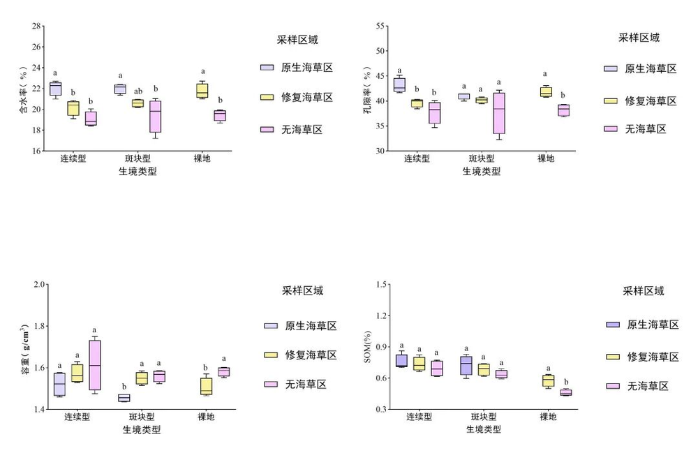 通过对比分析不同斑块化程度海草床修复后沉积物的理化性质,