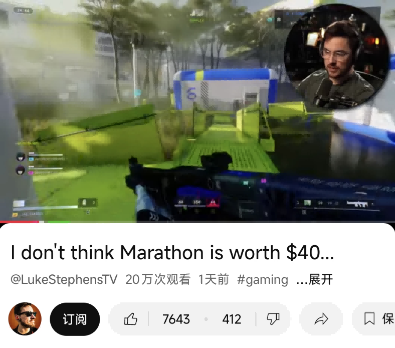 像是博主Luke Stephens直言不讳“我觉得《马拉松》不值40美元”,随后花了半个小时的时间详细拆解,矛头直指测试中UI混乱、单人体验不佳等体验问题。