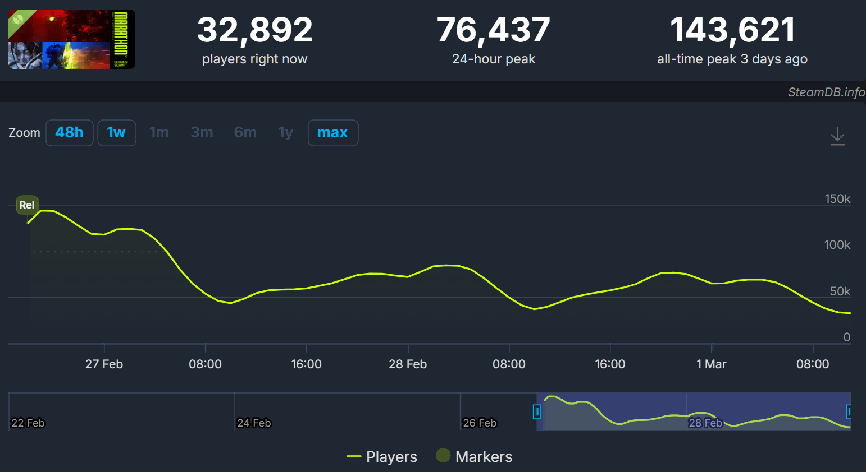 这些因素以及测试期间的Steam在线人数走势都在暗示着,随着进入正式开服,或许《马拉松》正走在一条通往“小众”身份的路上。而对于一款切入热门品类,又有着极高研发投入的3A级大作来说,这可能并不是一个理想的结局。