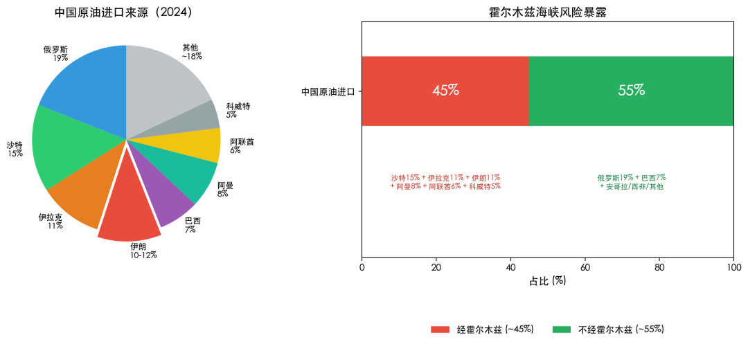 • 伊朗:约10-12%(完全依赖霍尔木兹,且面临供应中断风险)