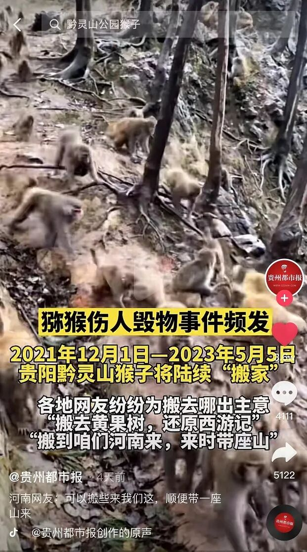 黔灵山的猴子数量过剩,管理方不得不选择把过多的猴子转移