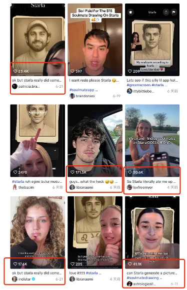 从社媒内容看,Starla和本轮的Amora给美国和新兴市场了暗示了不同的两种服务,快来这个App看看你的soulmate长什么样vs.快来这里看你的soulmate、把他/她带回家。