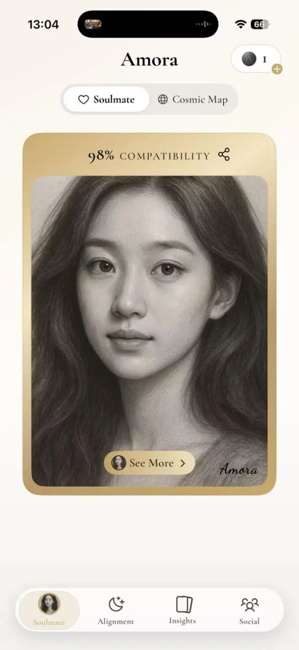 但Amora,完全放弃了每日运势等占星服务,将主线彻底切换到了“显化Soulmate”上。