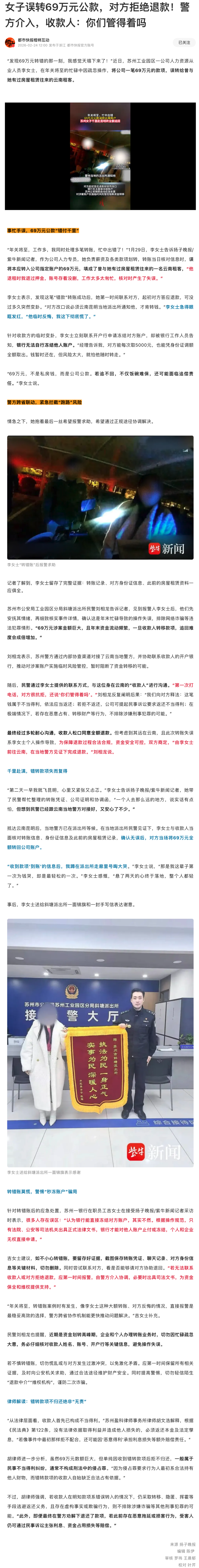 看完这个新闻,你是不是觉得这个收到钱的人事儿真多,而且看起来还想要贪人家的钱,要不是警察出面都不给人家了?