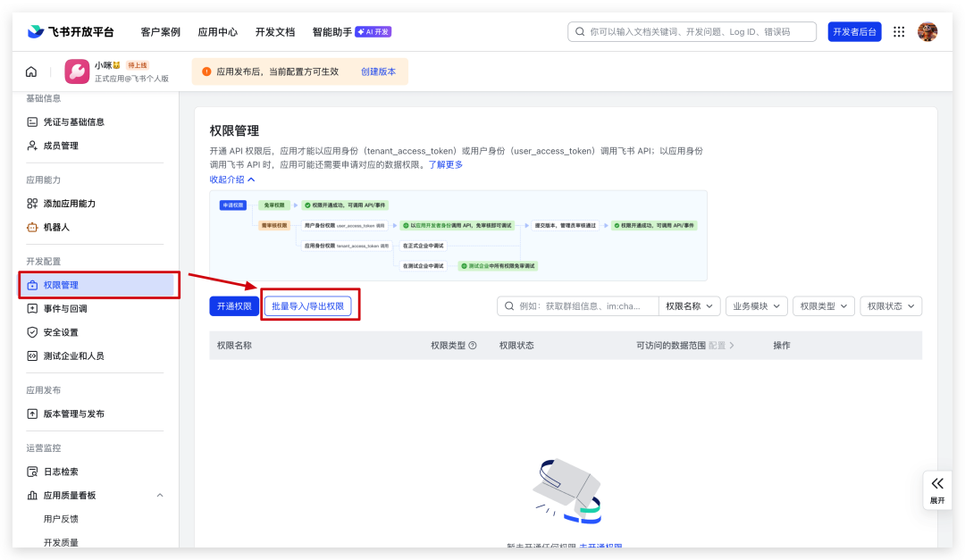 “权限管理” --> “批量导入/导出权限”。