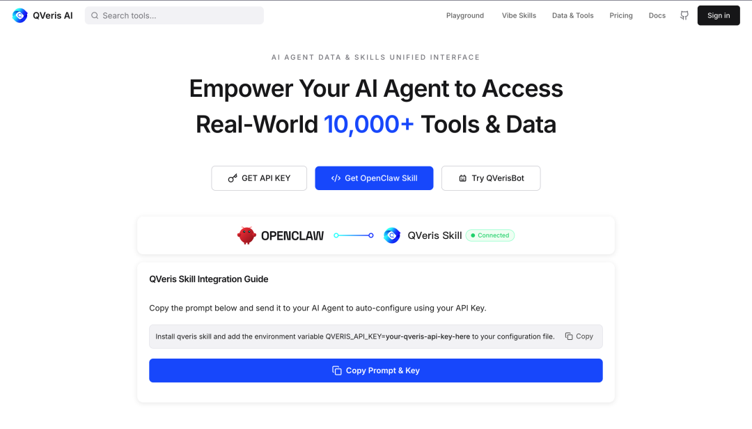可以把QVeris理解成API的OpenRouter,一个API KEY打通成千上万个不同服务和工具的API。