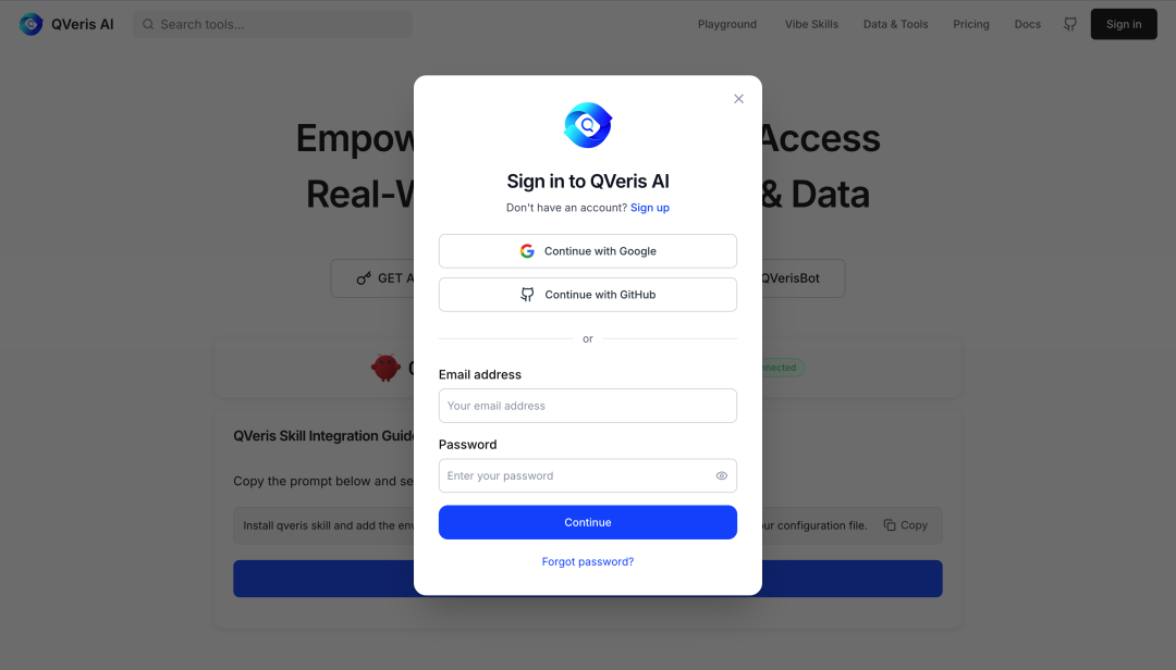 首先,访问 https://qveris.ai/。