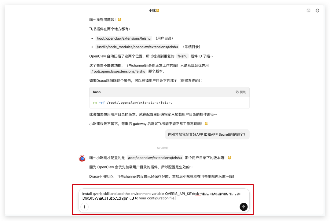 如果安装失败了,就直接把QVeris的Github(https://github.com/QverisAI/QverisAI)塞给KIMI Claw,并告知QVeris的base url是https://qveris.ai/api/v1/search。