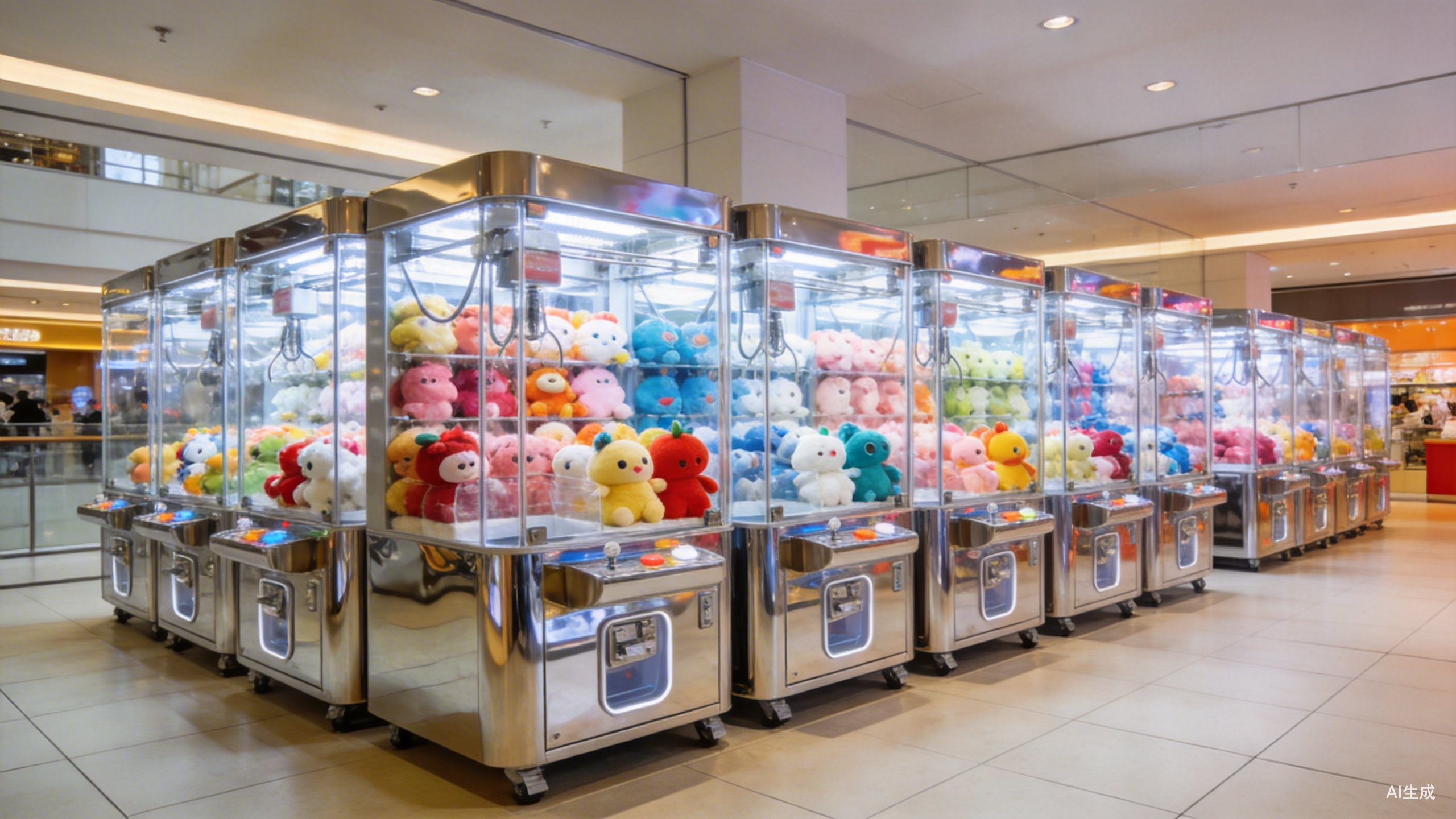 我对娃娃机的印象还停留在那些电玩城里,某个区域摆几台机器,不锈钢爪子松松垮垮地甩来甩去,投个二三十块钱,运气好能抓上来一只粗制滥造的毛绒娃娃,拿回家就随手一丢,再想不起来。