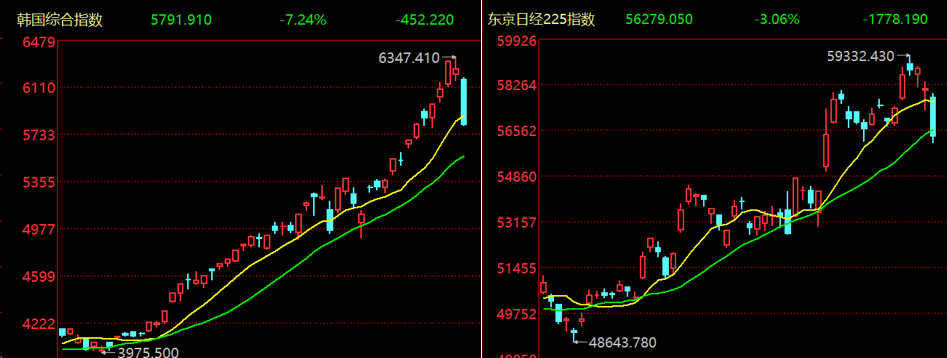 韩国股市遭遇“史诗级重挫”——KOSPI 200指数期货暴跌超7%,日经225指数跌幅扩大,最新下跌超3%。