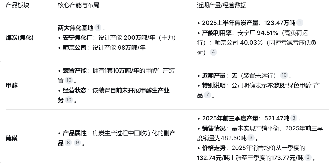 焦炭是绝对核心:公司的所有生产活动都围绕“炼焦”展开,安宁焦化厂的高负荷运行为公司提供了稳定的现金流和产品基础。