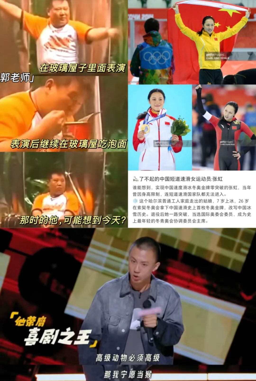 (左上:早期郭老师右上:奥运冠军张虹下:脱口秀演员付航)