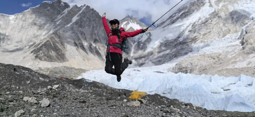 时隔一年,落笔时,我依然会想起走进珠峰大本营的那天,海拔5300米处,我终于看见了无数次在新闻中看到的珠峰登山大本营!攀登季即将到来,身旁背夫来来往往,背着桌子椅子等各种运往大本营的设备……一时间有种不真实的感觉,竟不觉得辛苦和高反,还请小伙伴帮忙抓拍了好几张跳起的照片!(勿模仿,易高反)