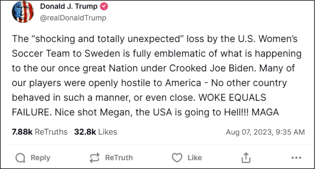 这支世界排名第一、曾四夺世界杯冠军的热门球队,也很快倒在了淘汰赛第一轮。时任总统的拜登安慰说:“美国女子国家足球队,你们让祖国感到骄傲,恭喜你们取得如此出色的成绩。”