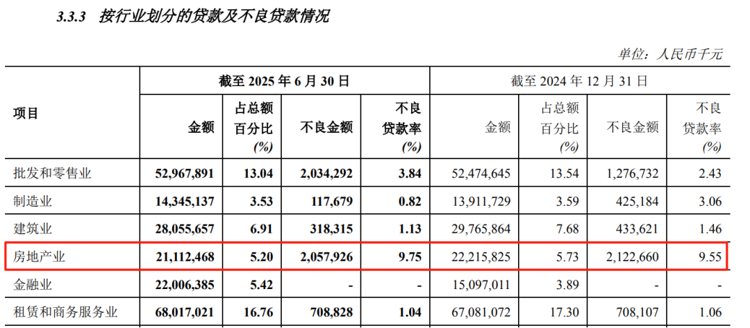 2025年6月末,房地产不良贷款余额20.58亿元;不良率9.75%,较2022年的4.06%翻了一倍多。