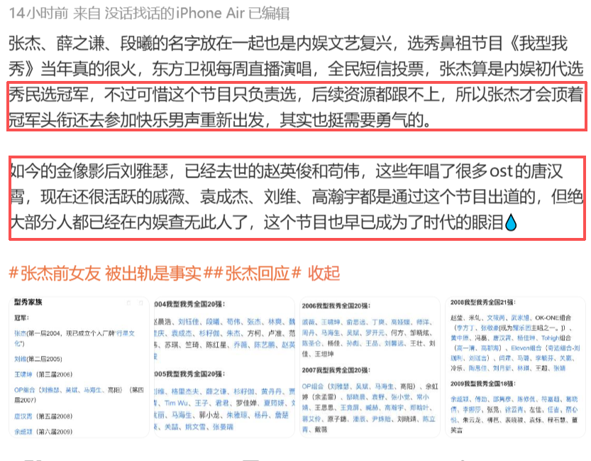 到这,薛之谦的私生活骂战,彻底演变成了张杰与《我型我秀》一帮人的恩怨清算。
