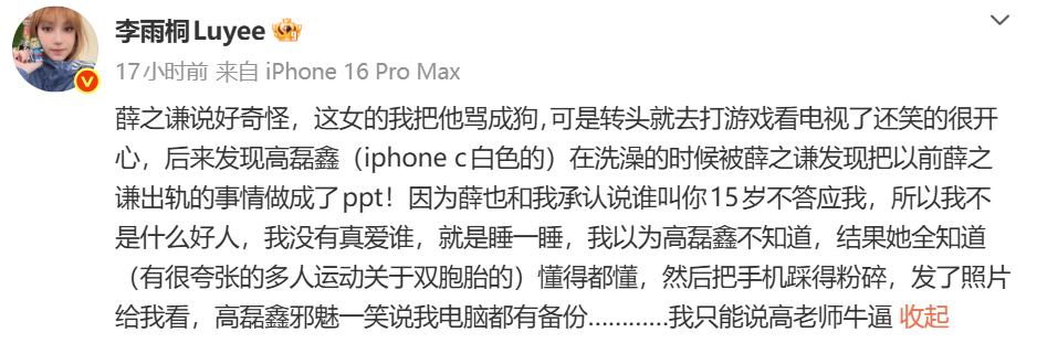 直到前两天,李雨桐再次喊话薛之谦,说要公开真相。