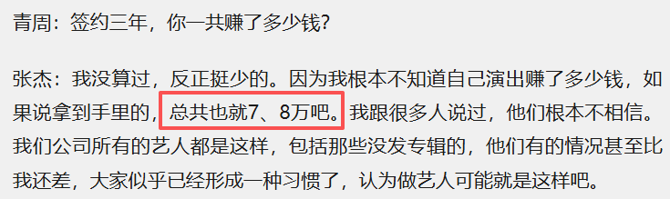 称自己收入拮据,签约三年总共赚了7、8万,有关音乐的承诺在节目爆火后也偃旗息鼓。