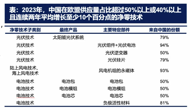 图说:2023年度中国净零技术、最终产品在的欧盟占比