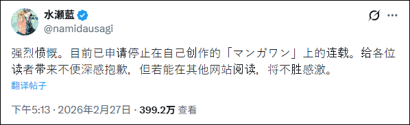 案件报道一周后,2026年2月27日,前面提到的小学馆的网络连载平台,Manga One发布公告“关于《常人仮面》停止配信的说明与致歉”。看似毫无关联,但二者因为同一个名字“山本章一”扯上关系。