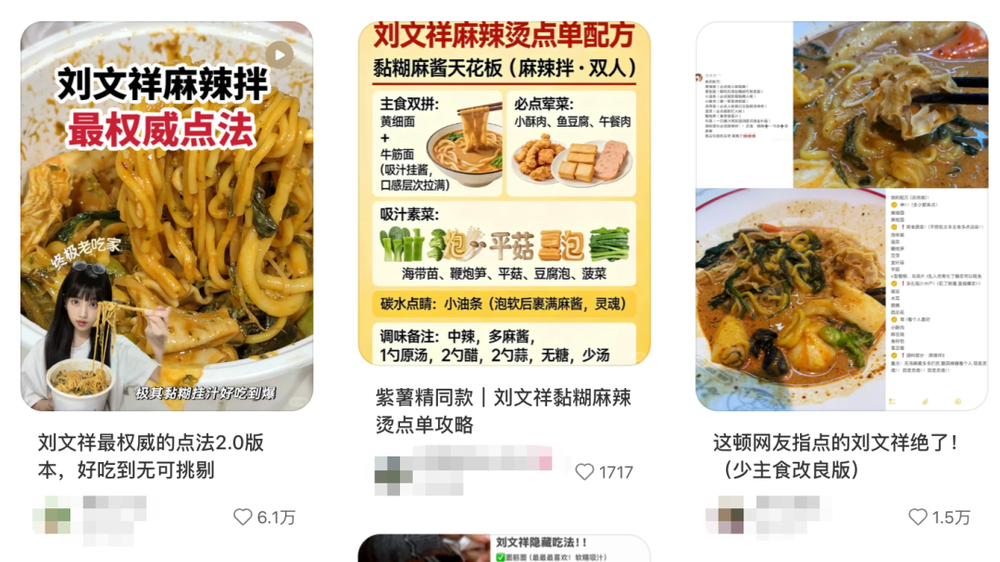 社交媒体上关于刘文祥麻辣烫的点餐攻略。