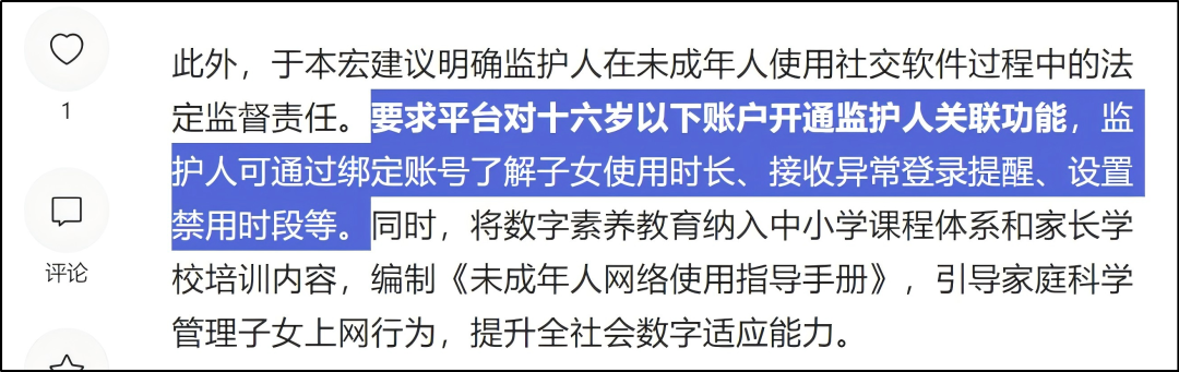 专家提了两点:建设一个青少年专属数字空间,开通监护人关联功能,这样孩子就能绿色上网。