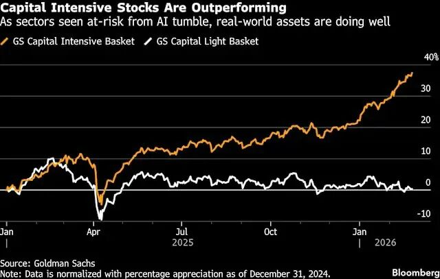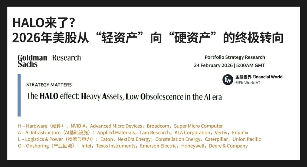 高盛最近推出的HALO交易,即AI引发的产业颠覆迫使投资人重新评估风险,具备“重资产、低淘汰率”(HALO——“Heavy Assets, Low Obsolescence”)特质的企业,这代表资本开始重新评估当下的核心资产。