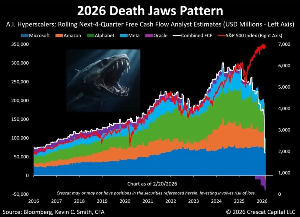一个恐怖的事实,历史上看,SP500和自由现金流高度关联。但是目前,预期的这五家巨头现金流估计要断崖。