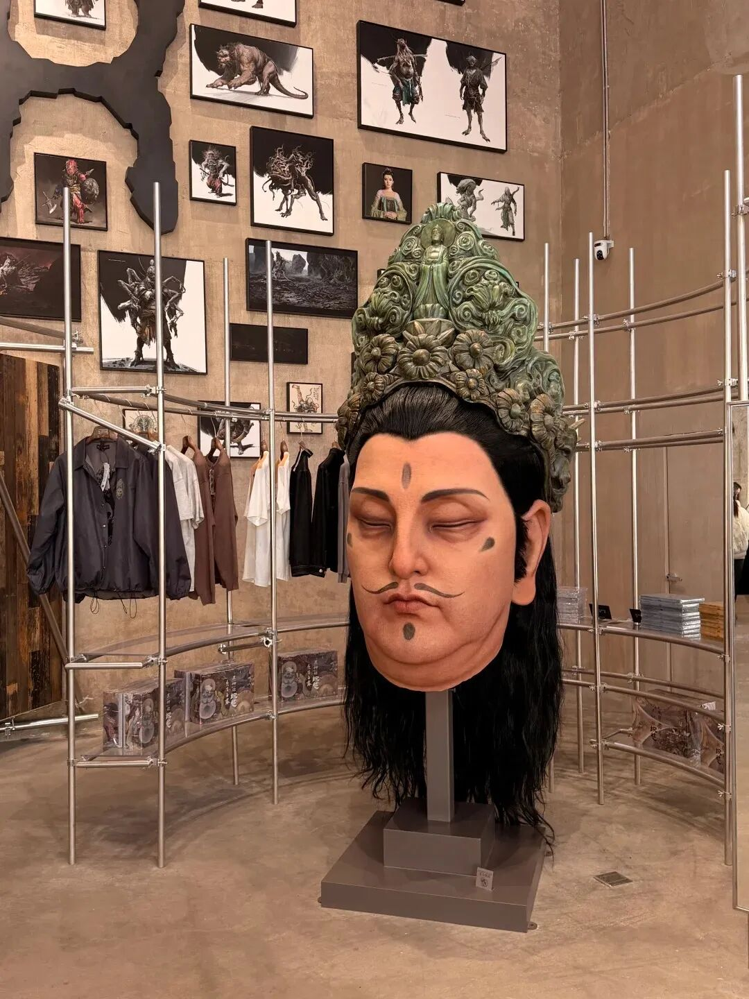 黑神话BLACKMYTH零售店(全国首店),钟馗骑着一只老虎,黑悟空半身像足有两米高,牛魔王的战损雕塑就在你面前——它们不是摆在货架上的商品,是立在空间里的“神像”。