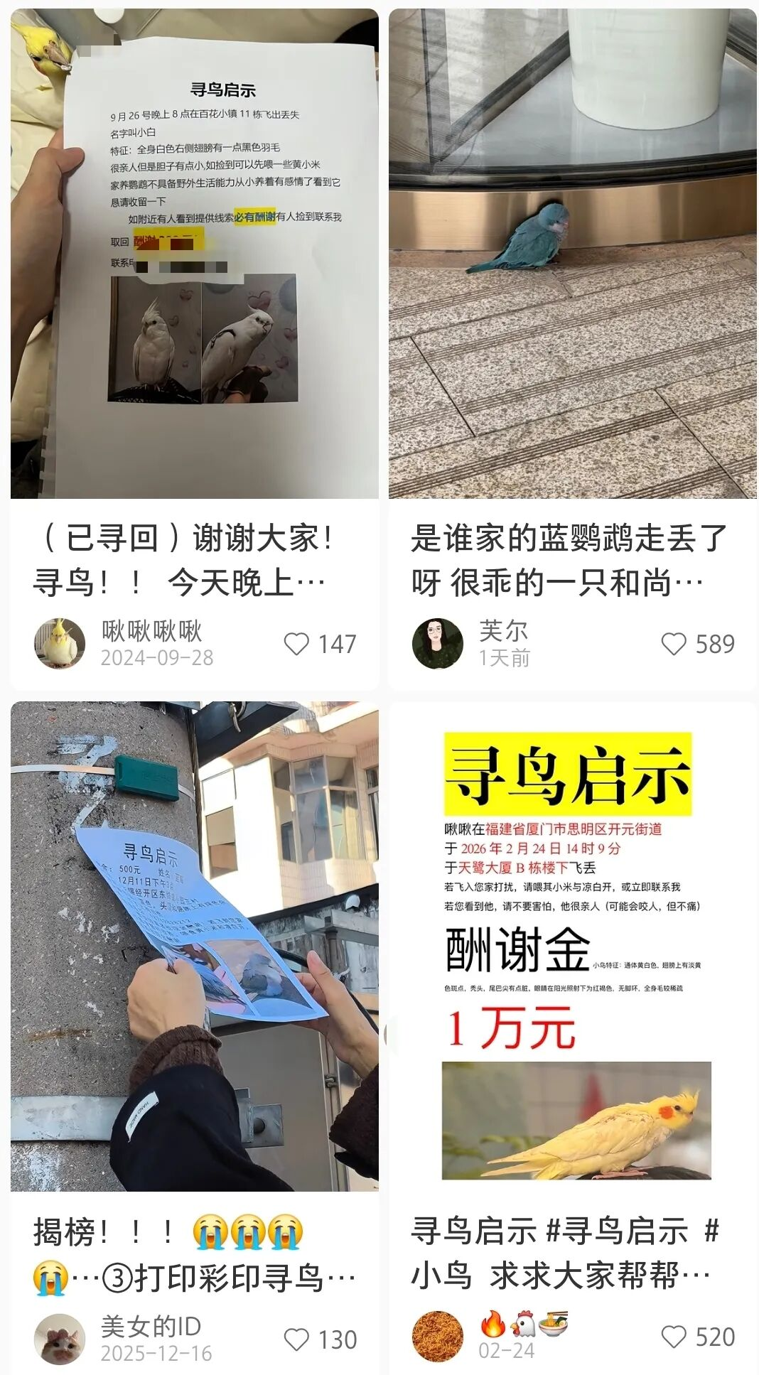 那问题来了,都把鸟当心头肉掌中宝,平常大家肯定也没少爱护,那丢鸟这件事又是怎么做到全国如此统一的呢?寻鸟启事怎么就能贴遍全国小区了?