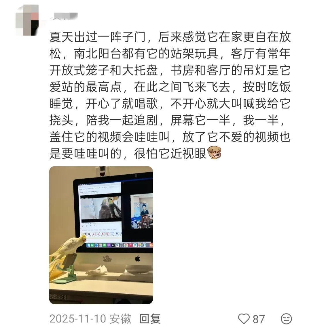 而现在年轻人养鸟,更像对待猫狗的态度,把鸟作为伙伴和家人,因此多半是“散养”。