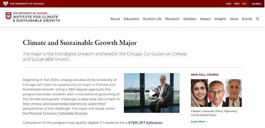 芝加哥大学在2025年秋推出的「气候与可持续增长」专业,走的是同一条路,但执行得更彻底。