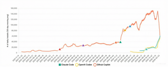 2026年初春,GitHub Copilot的曲线在VS Code安装量图表上骤然下坠——这位曾拥有2000万用户的AI编码先驱,在Claude Code与OpenAI Codex入场六个月内,就被竞品合力超越。