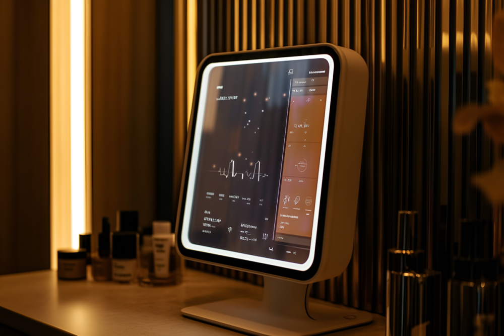 最先吸引我的是那家AI智能科技美肤中心。推开玻璃门,迎面而来的是浓郁的精油香味和粉色调的装修风格。这与传统的县城美容院并无二致,但在大厅最显眼的位置摆放着一台印有“AI深度测肤”字样的半包围式仪器。