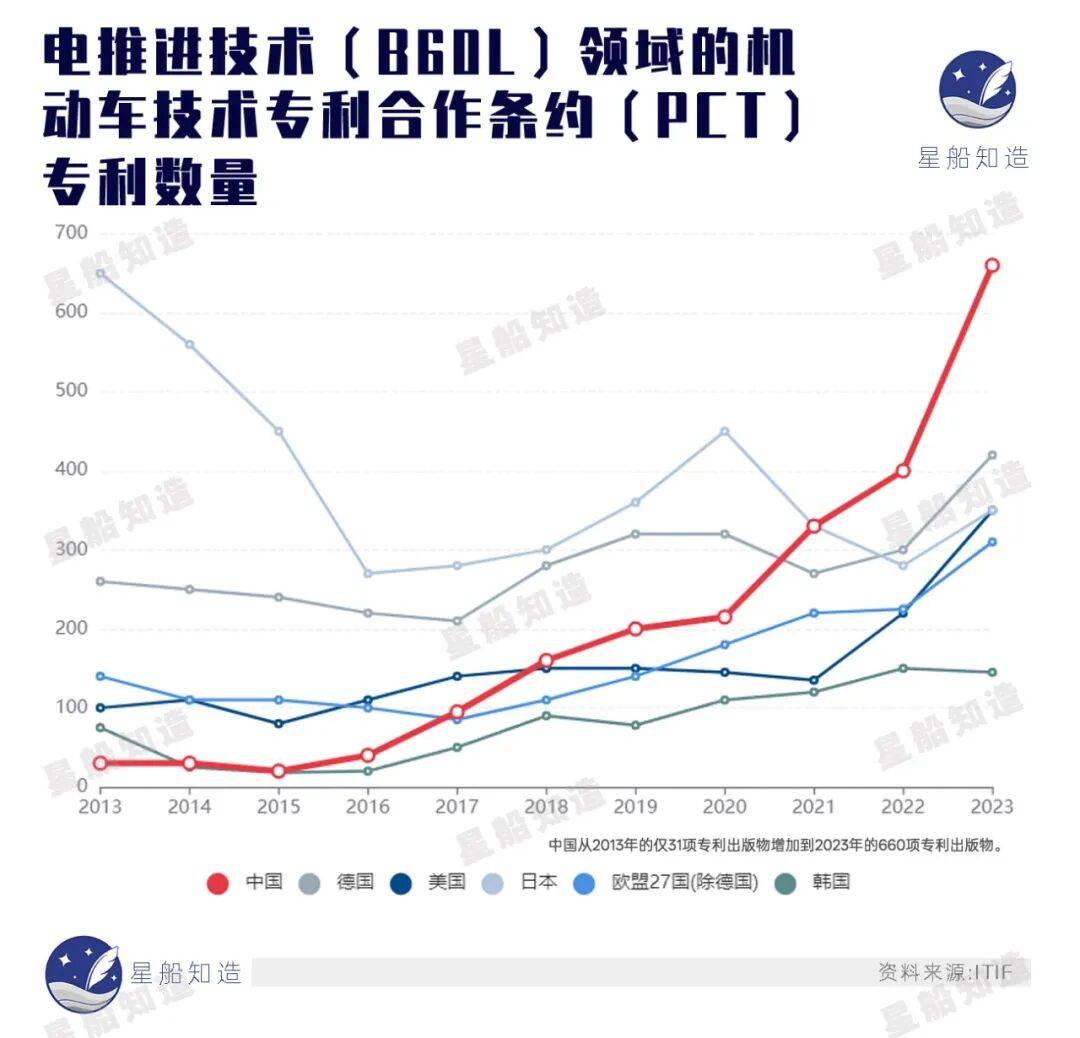 电推进技术(B60L)领域的机动车技术专利合作条约(PCT)专利数量。
